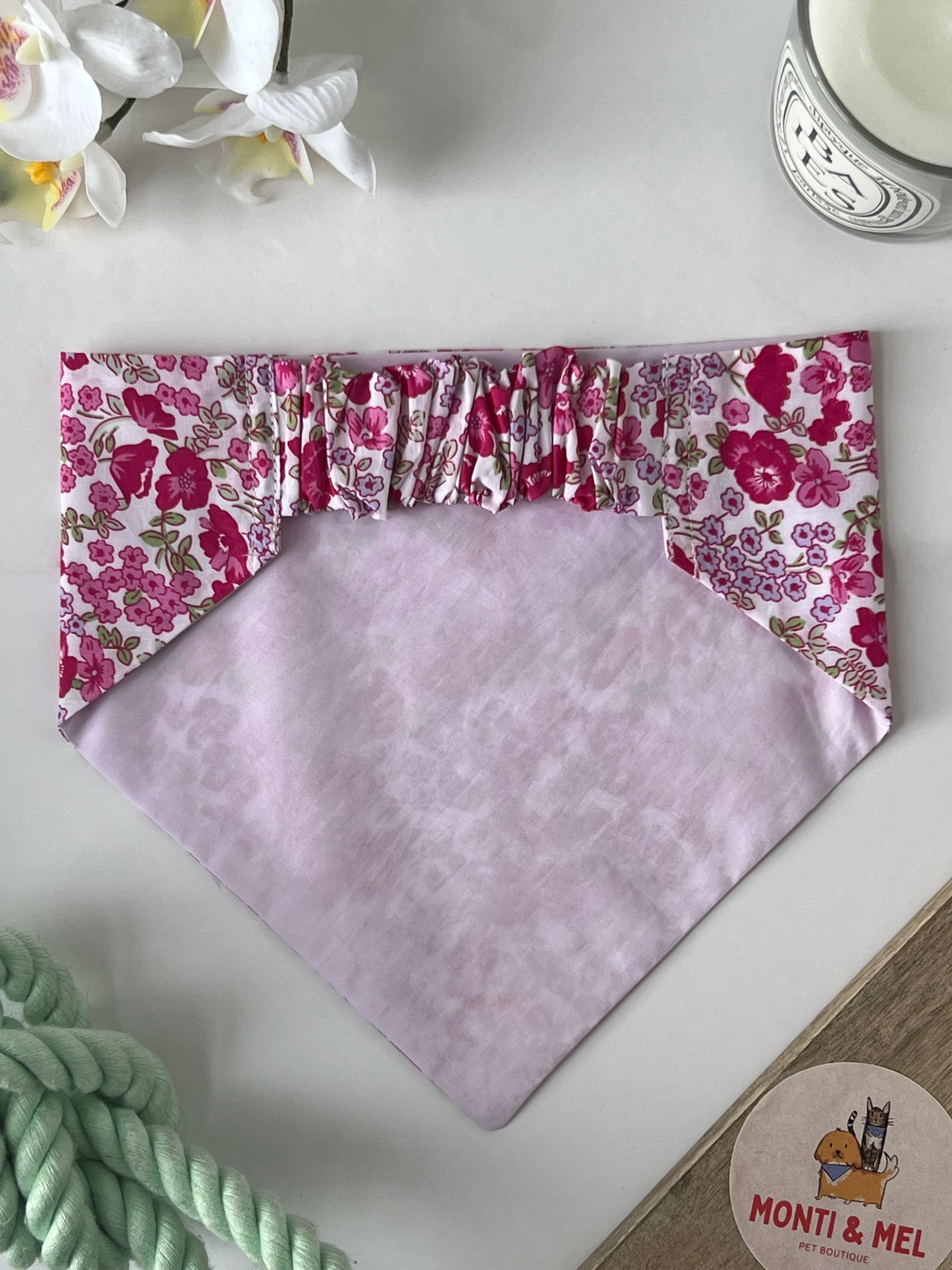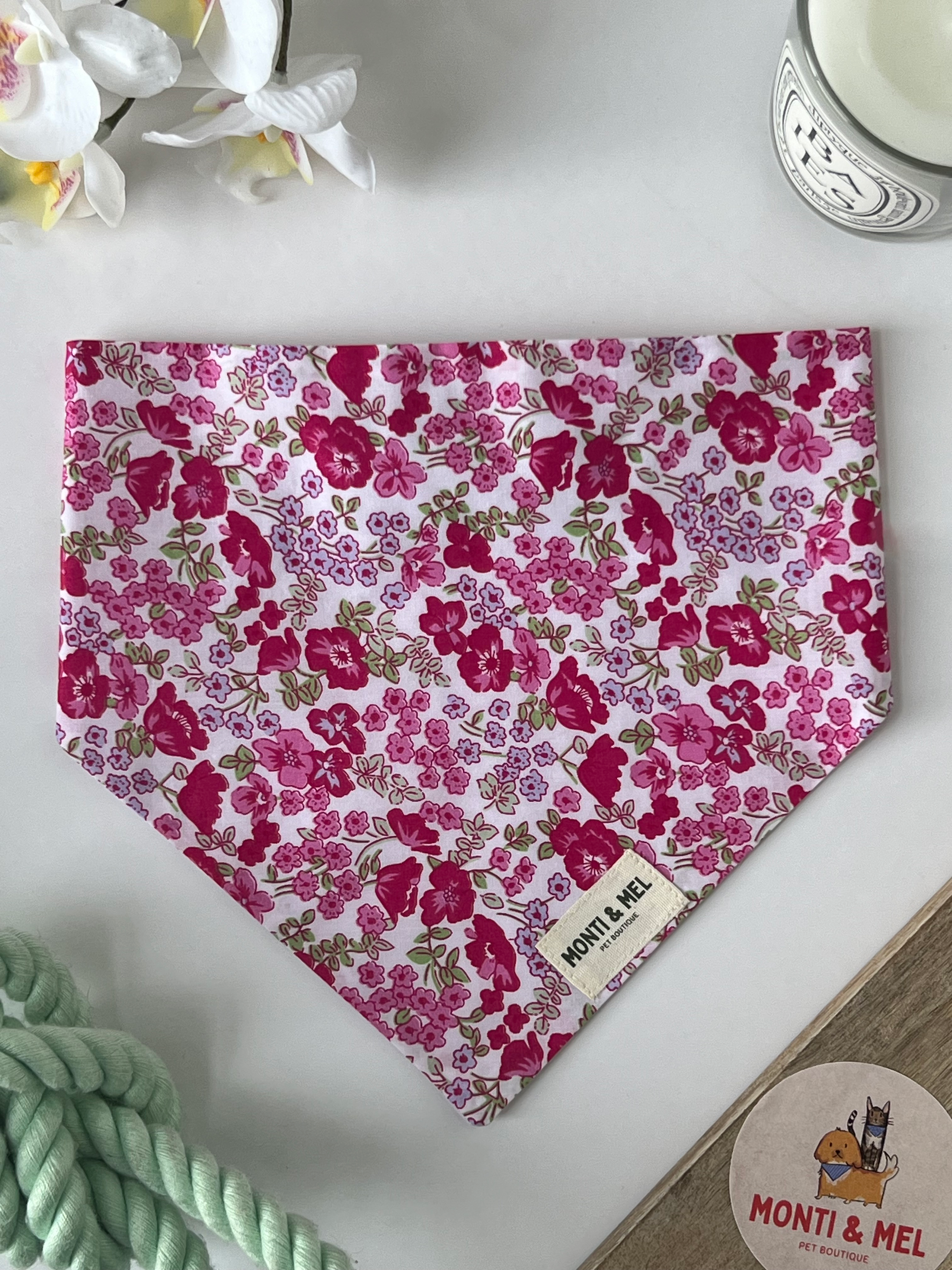 Introducing the “Flora’s Meadow” scrunchie bandana - lovingly handmade in London using high quality 100% cotton fabrics and featuring gorgeous designs. This scrunchie bandana is designed to provide style and comfort for your pup or kitty.