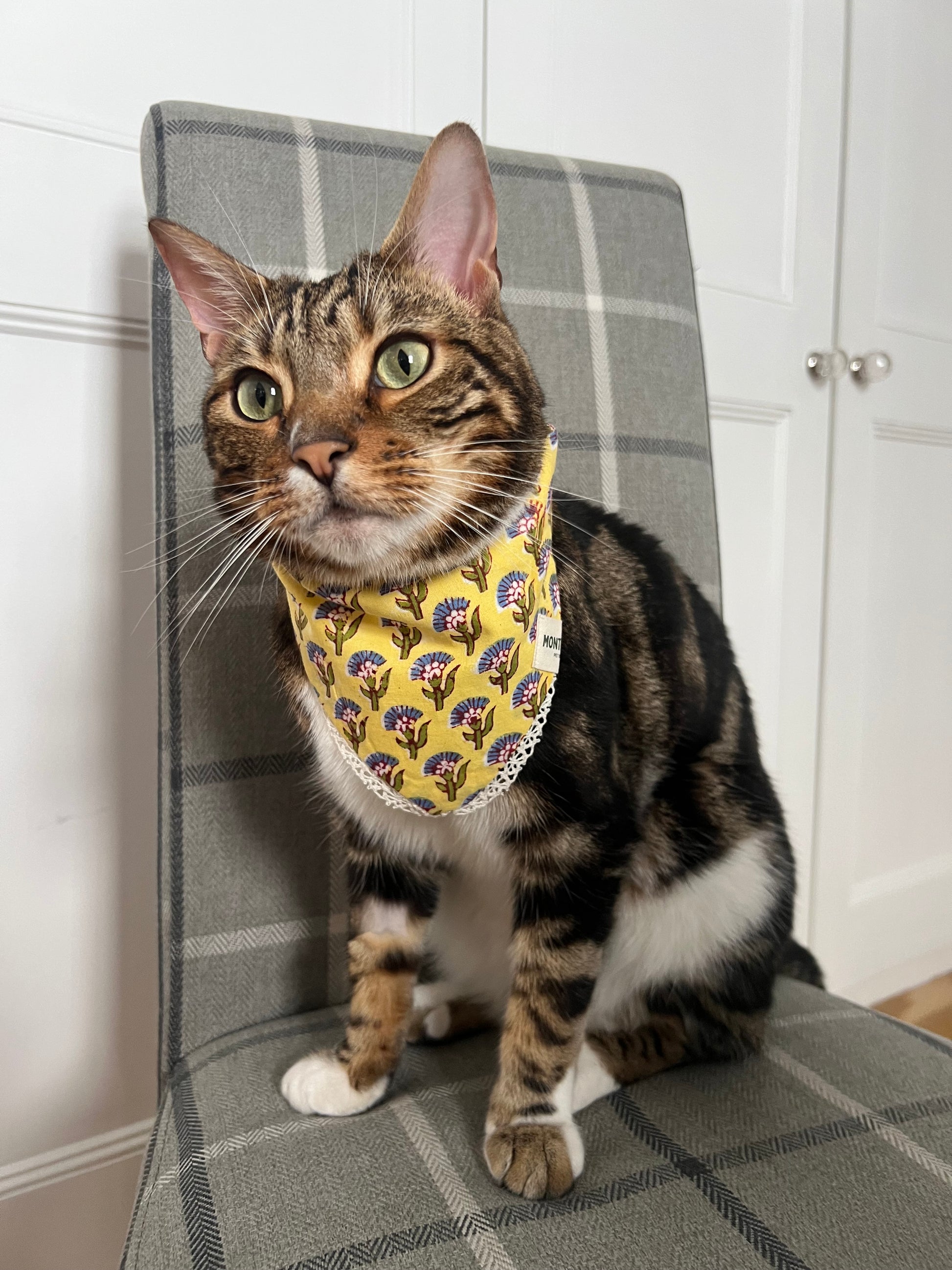 This bandana is made from lightweight materials, making them purrfect for our feline friends who don't like wearing heavy collars, but who still want to elevate their look.