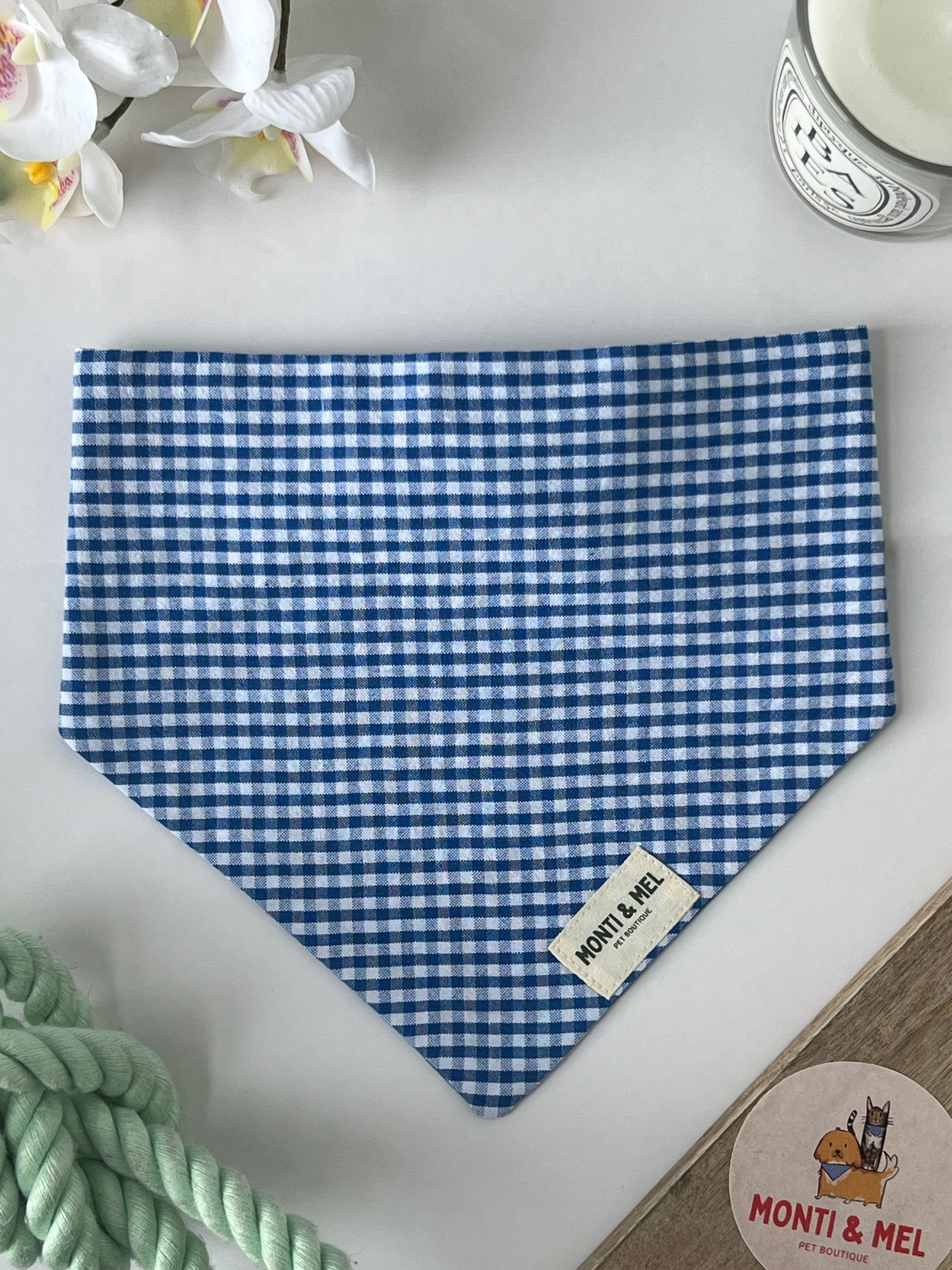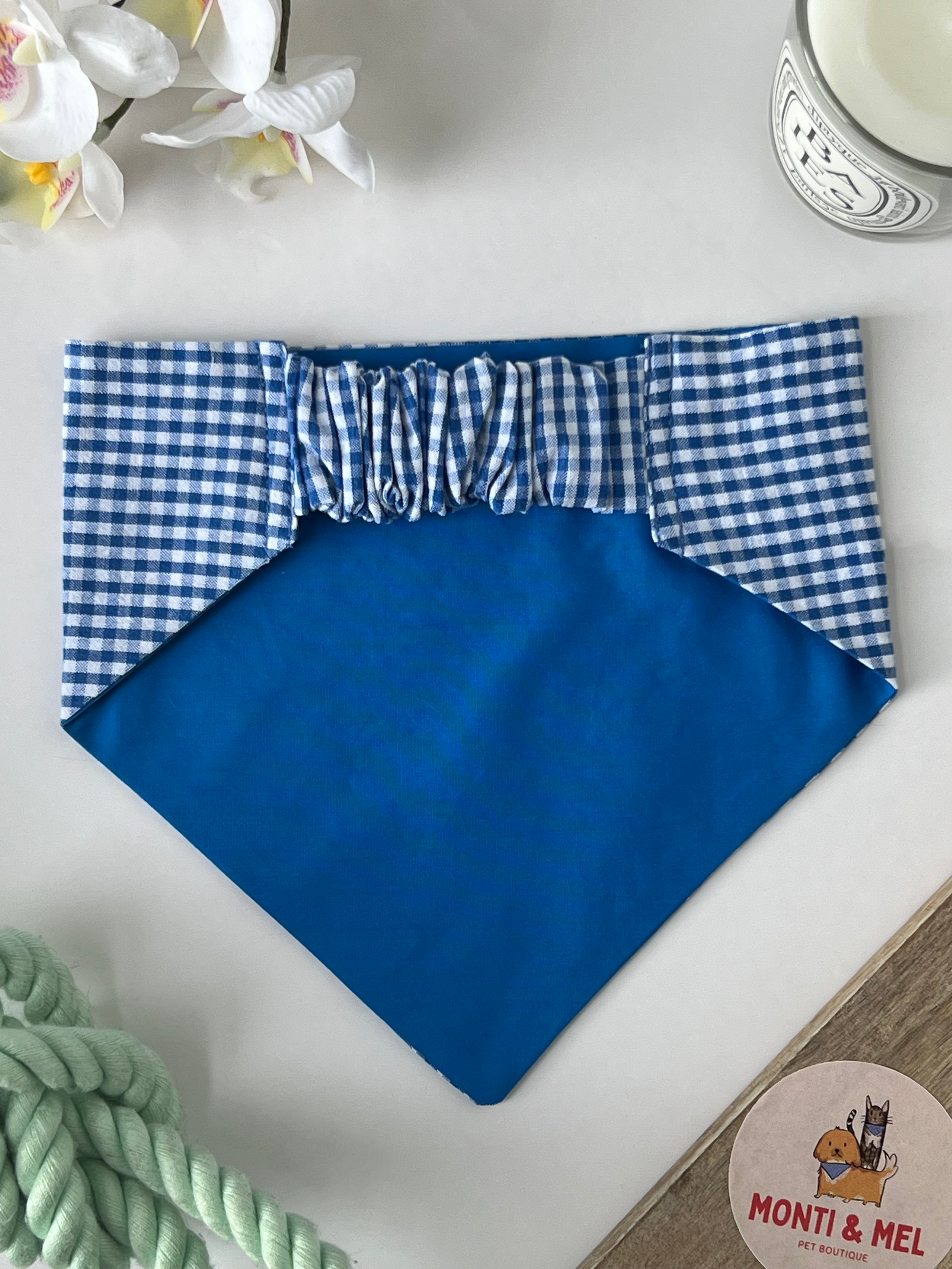 Our scrunchie bandanas are designed so that they can be worn with or without a collar! You don't need to worry about tying or fastening, you can just slide the bandana over their head and it’ll stay in place all day! Our premium cotton fabrics are carefully chosen to ensure the upmost comfort.